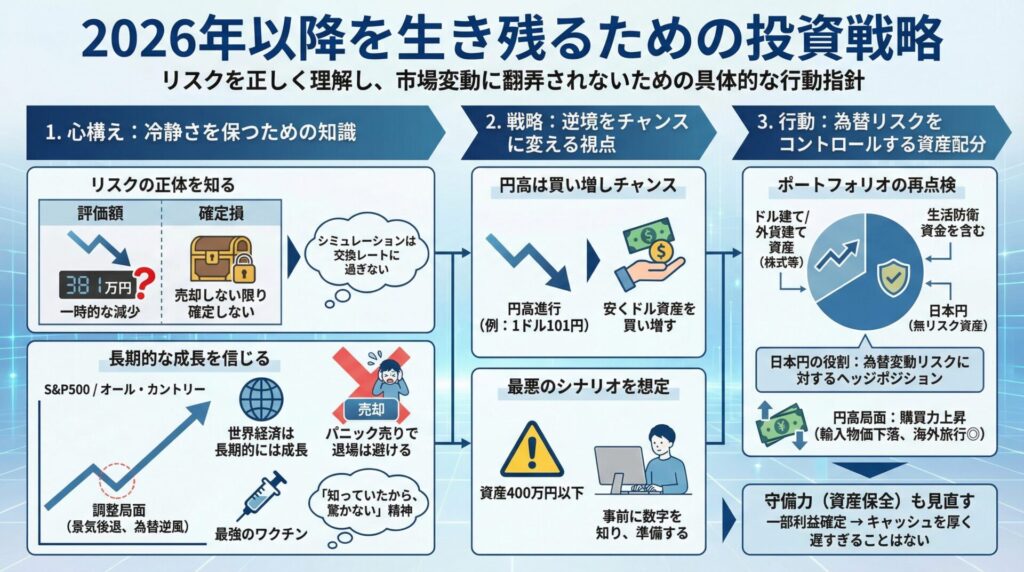 リスクの正体と規模を正確に把握していれば、対策を立てることが可能です。市場の変動に翻弄されず、2026年以降の相場を生き抜くための具体的な考え方と行動指針を提示します。